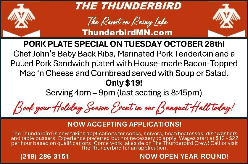 For reservations, please call 218-286-3151.
